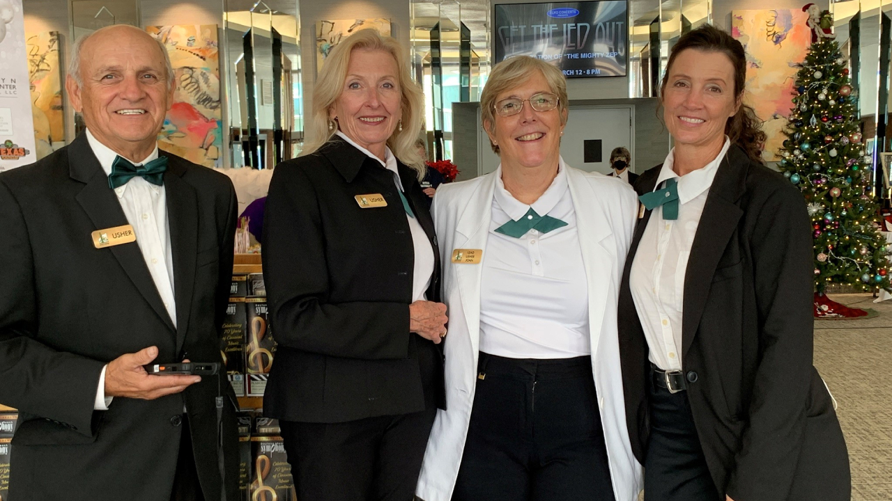 All volunteers must strictly follow the dress code to maintain a professional appearance and ensure they are easily identifiable to patrons; those not properly attired will not be allowed to work. Volunteer Ushers are required to wear black slacks with white blouses/collared shirts a black blazer. Black, closed-toe shoes are required. Crossties, bowties and usher badges will be provided.